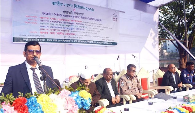 তথ্যবিবরণী : জাতীয় সংসদ নির্বাচন ও গণভোট উপলক্ষ্যে বাংলাদেশ বেতার খুলনা কেন্দ্র আয়োজিত ‘গণভোট ও নির্বাচনে বাংলাদেশ বেতার’ শীর্ষক কমিউনিটি ব্রডকাস্ট আজ বুধবার নগরির শহিদ হাদিস পার্কে অনুষ্ঠিত হয়। এতে প্রধান অতিথি ছিলেন খুলনা বিভাগীয় কমিশনার মোঃ মোখতার আহমেদ।