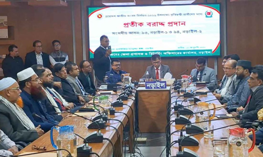 বুধবার (২১ জানুয়ারি) সকাল থেকে দুপুর পর্যন্ত নড়াইলের জেলা প্রশাসক ও জেলা রিটার্নিং কর্মকর্তা ড. মোহাম্মদ আব্দুস সালাম প্রার্থীদের মাঝে প্রতীক বরাদ্দ দেন।