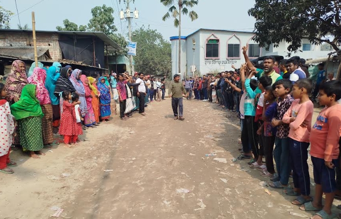 আরেক নারী সিমা খাতুন বলেন, “এই রাস্তাই আমাদের একমাত্র যাতায়াতের পথ। বর্ষায় কাদা আর শুকনো মৌসুমে ধুলায় আমাদের সন্তানরা ঠিকমতো স্কুলে যেতে পারে না। অবৈধ ড্রাম ট্রাক চলাচল বন্ধ এবং দ্রুত রাস্তা সংস্কারের দাবি জানাচ্ছি।”