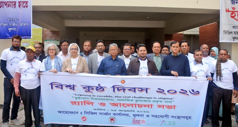 তথ্যবিবরণী : বিশ্ব কুষ্ঠ দিবস উপলক্ষ্যে আলোচনা সভা আজ রবিবার সকালে খুলনা সিভিল সার্জন কার্যালয়ের স্কুল হেলথ ক্লিনিকের সম্মেলনকক্ষে অনুষ্ঠিত হয়। এতে সভাপতিত্ব করেন ডেপুটি সিভিল সার্জন ডা. মো: মিজানুর রহমান। দিবসটি পালনে এবারের প্রতিপাদ্য ‘কুষ্ঠরোগ নিরাময়যোগ্য, সামাজিক কুসংস্কার প্রকৃত বাধা’। সভায় অতিথিরা বলেন, কুষ্ঠ রোগ ছোঁয়াচে নয়, নিরাময়যোগ্য। চিকিৎসার মাধ্যমে এ রোগ ভাল হয়। এই তথ্য প্রচার প্রচারণার মাধ্যমে সকলের কাছে পৌঁছে দিতে হবে। কুষ্ঠ রোগের উপসর্গ দেখা দিলে রোগীকে সাথে সাথে স্বাস্থ্য কমপ্লেক্সে নিয়ে যেতে হবে। এ রোগ সম্পর্কে সমাজে প্রচলিত কুসংস্কার থেকে সবাইকে সচেতন করতে পারলে ২০৩৫ সালের মধ্যে দেশে কুষ্ঠ নিয়ন্ত্রণ হবে বলে আশা করেন অতিথিরা। আলোচনা সভায় সাবেক যক্ষ্মা বিশেষজ্ঞ ডা. আনোয়ারুল আজাদ, বেসরকারি উন্নয়ন সংস্থা পিনোনে’র প্রজেক্ট অ্যান্ড মেডিকেল ডিরেক্টর সিস্টার ডাঃ রবার্তে সিএসএস আভা সেন্টারে ম্যানেজার মোঃ মোহসিন উদ্দিন, পিকেএসর এর ফেরদৌস কবীর, মো: আক্তার হোসেন প্রমুখ বক্তৃতা করেন। এসময় কুষ্ঠরোগ নিয়ে কাজ করা বিভিন্ন এনজিও প্রতিনিধিরা উপস্থিত ছিলেন। খুলনা সিভিল সার্জন কার্যালয় ও বিভিন্ন উন্নয়ন সহযোগী সংস্থা যৌথভাবে এ অনুষ্ঠানের আয়োজন করে। এর আগে সিভিল সার্জন কার্যালয় থেকে দিবসটি উপলক্ষ্যে বর্ণাঢ্য শোভাযাত্রা বের করা হয়। শোভাযাত্রায় বিভিন্ন এনজিও প্রতিনিধি ও শ্রেণি পেশার জনগণ অংশ নেন। উল্লেখ্য, কুষ্ঠরোগের প্রাথমিক লক্ষণ চামড়ায় হালকা বাদামী বা ফ্যাকাশে অথবা লালচে অবশ দাগ, দানা বা গুটি কিংবা চামড়া মোটা হয়ে যাওয়া। উপজেলা হাসপাতাল, কুষ্ঠ ক্লিনিক, কুষ্ঠ হাসপাতাল ও বক্ষব্যাধি ক্লিনিকসমূহে বিনামূল্যে কুষ্ঠরোগের চিকিৎসা পাওয়া যায়।