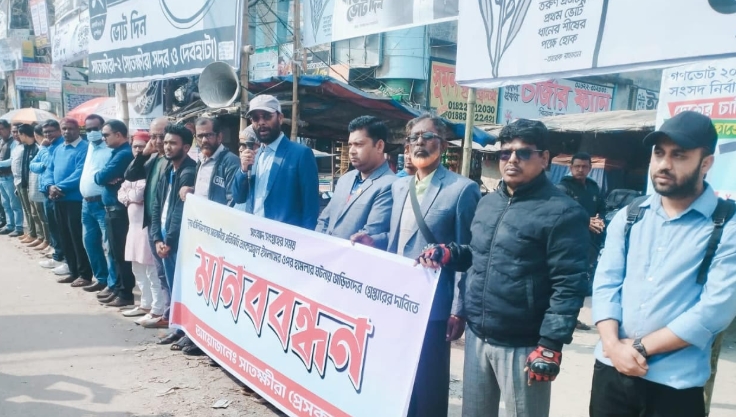 সাতক্ষীরায় সাংবাদিকের ওপর হামলার প্রতিবাদে মানববন্ধন