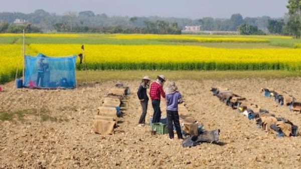 সাতক্ষীরা সরিষা ফুলে হলুদময় মাঠ, মধু সংগ্রহে ব্যস্ত মৌ-চাষিরা