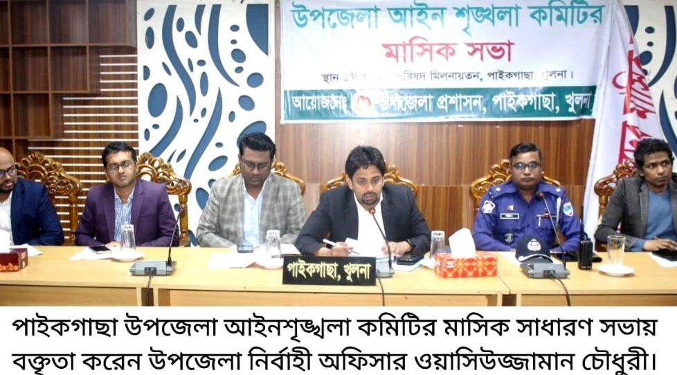 পাইকগাছা প্রতিনিধি : পাইকগাছা উপজেলা আইনশৃঙ্খলা ও উপজেলা পরিষদের মাসিক সাধারণ সভা অনুষ্ঠিত হয়েছে। ২৮ জানুয়ারি বুধবার সকালে উপজেলা পরিষদ মিলনায়তনে উপজেলা নির্বাহী অফিসার ওয়াসিউজ্জামান চৌধুরী'র সভাপতিত্বে পৃথক পৃথক এ সভা অনুষ্ঠিত হয়। সভায় আগামী ত্রয়োদশ জাতীয় সংসদ নির্বাচনী আচরণবিধি ও নির্বাচন পূর্ববর্তী আইনশৃঙ্খলা পরিস্থিতি স্বাভাবিক, গণভোটের প্রচারণা, ভোটকেন্দ্রে সিসি ক্যামেরা স্থাপন, যানজট নিরসন, সরকারি জমি অবৈধ দখল, ভাতা, তরমুজ ও রবি শস্য উৎপাদন বৃদ্ধি, কৃষকদের প্রণোদনা, সার সিন্ডিকেট, জেলেকার্ড, আধুনিক পদ্ধতিতে মৎস্য চাষ, গাঁজা, মাদক, চুরি, ডেঙ্গু, জমিবিরোধ, হাসপাতালে জনবল সংকটে নাজুক পরিস্থিত, মোবাইল কোর্ট, দ্রব্য মূল্য উর্ধ্বগতি নিয়ন্ত্রণ, ইভটিজিং, কিশোরদের অনিয়ন্ত্রিত মটরসাইকেল চালানো, কুকুরের উপদ্রব সহ সামগ্রিক বিষয়ে গুরুত্বপূর্ণ আলোচনা ও সিদ্ধান্ত গৃহীত হয়। এসময় উপজেলা স্বাস্থ্য ও প.প. কর্মকর্তা ডা. মাহবুবর রহমান, সহকারী কমিশনার (ভূমি) মো. ফজলে রাব্বী, সিনিয়র উপজেলা মৎস্য কর্মকর্তা সৈকত মল্লিক, প্রাণিসম্পদ কর্মকর্তা ডা. পার্থ প্রতিম রায়, কৃষি কর্মকর্তা কৃষিবিদ মো. একরামুল হোসেন, ওসি তদন্ত ইদ্রিসুর রহমান, বীরমুক্তিযোদ্ধা গাজী রুহুল আমিন, সরকারি কর্মকর্তা যথাক্রমে বিদ্যুৎ রঞ্জন সাহা, হুমায়ুন কবির, অনাথ কুমার বিশ্বাস, হুমায়ূন কবির, রেশমা আক্তার, জয়ন্ত ঘোষ, ওয়াহিদ মুরাদ, প্রবীর কুমার দত্ত, রাজীব বিশ্বাস, আব্দুস সামাদ, প্রশান্ত পাল, হাসিবুর রহমান, আব্দুল্লাহ আল মামুন, সঞ্চয় দেবনাথ, জিএম জাকারিয়া, মীর নূরে আলম সিদ্দিকী, আ. আল মামুন, রিয়াজ উল আজাদ, রবিউল ইসলাম, পল্লী বিদ্যুতের রুহুল আমিন, দুপ্রক সভাপতি জিএম এম আজাহারুল ইসলাম, প্রভাষক সাইদুর রহমান, প্রধান শিক্ষক মো. আব্দুল ওহাব ও দেবাশীষ সরদার, অধ্যক্ষ আজহার আলী, ইউপি চেয়ারম্যান রিপন কুমার মন্ডল, ভারপ্রাপ্ত ইউপি চেয়ারম্যান আব্দুলাহ সরদার, শেখ খোরশেদুজ্জামান, পীযুষ কান্তি মন্ডল, আবুল হাশেম, ছখিনা বিবি, পাইকগাছা প্রেসক্লাবের সেক্রেটারি মোসলেম উদ্দিন আহমেদ, সাংবাদিক প্রকাশ ঘোষ বিধান, রিপোর্টার্সের সেক্রেটারি আসাদুল ইসলাম সহ বিভিন্ন দপ্তর, প্রতিষ্ঠানের কর্মকর্তা, সাংবাদিক, জনপ্রতিনিধি সহ গণমাধ্যম কর্মীরা বক্তৃতা করেন ও উপস্থিত ছিলেন।