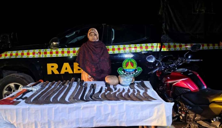 র্যাব-৬ এর কোম্পানি কমান্ডার এএসপি ইমরান জানান, গোপন সংবাদের ভিত্তিতে রাত ১টার দিকে চটকাবাড়িয়া গ্রামের মাদক কারবারি মো. হোসেনের বাড়িতে অভিযান পরিচালনা করা হয়। এসময় ২ কেজি গাঁজা ও ৮টি রাম দাসহ বিপুল পরিমাণ দেশীয় অস্ত্রসহ তাছলিমাকে গ্রেফতার করা হয়।