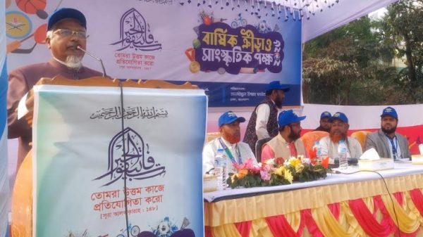 বিজ্ঞপ্তি : তানযীমুল উম্মাহ ফাউন্ডেশন কর্তৃক পরিচালিত তানযীমুল উম্মাহ প্রি- হিফয মাদরাসা খুলনা শাখার আয়োজনে বার্ষিক ক্রীড়া ও সাংস্কৃতিক পক্ষ পালিত হয়েছে। শুক্রবার (৩০ জানুয়ারি) নিরালা আদর্শ মাধ্যমিক বিদ্যালয় মাঠ প্রাঙ্গণে ফাইনাল রাউন্ড অনুষ্ঠিত হয়। তানযীমুল উম্মাহ ফাউন্ডেশনের ডিরেক্টর ও খুলনা জোন ইনচার্জ আ খ ম মাসুম বিল্লাহ’র সভাপতিত্বে ও শাখা প্রধান হাফেজ ইমরান খালিদের পরিচালনায় অনুষ্ঠানে প্রধান অতিথি ছিলেন সিদ্দিকীয়া জামেয়া-ই মাদানীয়া ট্রাস্টের সেক্রেটারি এস এম আজিজুর রহমান। বিশেষ অতিথি ছিলেন খুলনা অঞ্চলের শাখা সমূহের পরিচালনা কমিটির সদস্য আব্দুল্লাহ আল ফারুক, হাফেয আব্দুল মুমিন, আরিফ উল্লাহ সহ বিভিন্ন শাখা প্রধান ও সহকারী প্রধান গণ। এ সময় প্রতিষ্ঠানের সকল পর্যায়ের শিক্ষক, শিক্ষার্থী ও অভিভাবকগণ। অনুষ্ঠানে প্রধান অতিথি