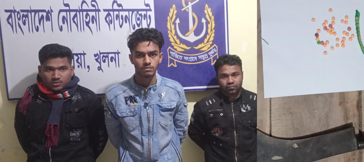 দিঘলিয়া প্রতিনিধি : দিঘলিয়ায় বাংলাদেশ নৌবাহিনীর অভিযানে ইয়াবাসহ ৩ জনকে আটক করা হয়েছে। পরে ভ্রাম্যমাণ আদালতের মাধ্যমে তাদের বিভিন্ন মেয়াদে কারাদণ্ড প্রদান করা হয়। প্রশাসন সূত্রে জানা গেছে, গোপন সংবাদের ভিত্তিতে সোমবার (৩ ফেব্রুয়ারি ২০২৬) রাত আনুমানিক আড়াইটায় দিঘলিয়া উপজেলার বারাকপুর ইউনিয়নের লাখোহাটি এলাকায় অভিযান পরিচালনা করা হয়। অভিযানকালে ওই এলাকার ১ জন মাদক ব্যবসায়ীসহ দেশীয় অস্ত্রধারী ও সরকারী কাজে বাধাদানকারী চক্রের আরও ২ জন সহযোগীকে আটক করা হয়। এ সময় তাদের কাছ থেকে ৪৪ পিস ইয়াবা ও দেশীয় অস্ত্র উদ্ধার করা হয়। আটক ব্যক্তিরা হলেন মোঃ সজল সরদার (৩০), পিতা: মোঃ কেরামত আলী সরদার, মোঃ ইব্রাহিম সরদার (৩০), পিতা: মোঃ নাসির সরদার, এস এম আজাদ শেখ (২২), পিতা: আলফাজ শেখ। তিনজনই দিঘলিয়া উপজেলার বারাকপুর ইউনিয়নের লাখোহাটি এলাকার বাসিন্দা। পরে উপজেলা নির্বাহী ম্যাজিস্ট্রেট ঘটনাস্থলে উপস্থিত হয়ে ভ্রাম্যমাণ আদালত পরিচালনা করেন। এতে প্রধান আসামি মোঃ সজল সরদারকে ১ বছর সশ্রম কারাদণ্ড ও ১ হাজার টাকা জরিমানা এবং অপর দুই সশস্ত্র সহযোগীকে ১৫ দিন করে সশ্রম কারাদণ্ড প্রদান করা হয়। পরবর্তীতে জব্দকৃত আলামতসহ আটক আসামিদেরকে দিঘলিয়া থানা পুলিশের কাছে হস্তান্তর করা হয়। স্থানীয় সূত্রে জানা যায়, আটক প্রধান আসামি দীর্ঘদিন ধরে ওই এলাকায় মাদক ব্যবসা ও পরিবহনের সঙ্গে জড়িত ছিল। অভিযানের ফলে এলাকায় আইনশৃঙ্খলা পরিস্থিতির উন্নতি হবে বলে সংশ্লিষ্টরা আশাবাদ ব্যক্ত করেছেন।