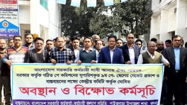 পাইকগাছা প্রতিনিধি : সরকার কর্তৃক গঠিত পে কমিশনের সুপারিশ অনুযায়ী নবম পে-স্কেলের গেজেট প্রকাশ ও দ্রুত বাস্তবায়নের দাবিতে খুলনার পাইকগাছা উপজেলায় সরকারি কর্মচারীরা অবস্থান ও বিক্ষোভ কর্মসূচি পালন করেছেন। বাংলাদেশ ...বিস্তারিত পড়ুন