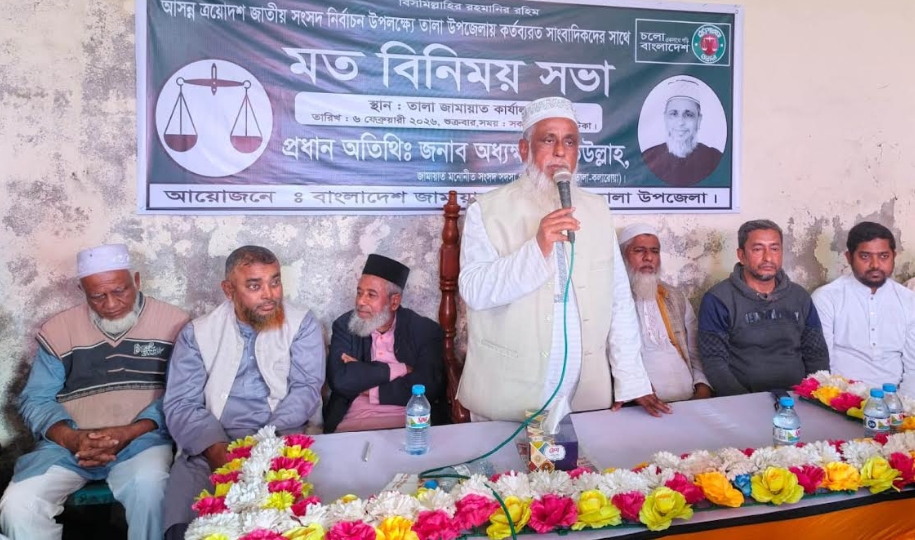 তালা প্রতিনিধি : আসন্ন ত্রয়োদশ জাতীয় সংসদ নির্বাচনকে সামনে রেখে সাতক্ষীরা জেলার তালা উপজেলায় কর্মরত সাংবাদিকদের সঙ্গে মতবিনিময় সভা করেছেন সাতক্ষীরা-১ (তালা-কলারোয়া) আসনে বাংলাদেশ জামায়াতে ইসলামী মনোনীত সংসদ সদস্য পদপ্রার্থী অধ্যক্ষ মোঃ ইজ্জত উল্লাহ। শুক্রবার (৬ ফেব্রুয়ারি) বেলা ১১টায় তালা বাজারস্থ জামায়াত কার্যালয়ে এ মতবিনিময় সভা অনুষ্ঠিত হয়। সাতক্ষীরা জেলা জামায়াতের নায়েবে আমীর ডাঃ মাহমুদুল হকের সভাপতিত্বে সভায় প্রধান অতিথি হিসেবে বক্তব্য রাখেন অধ্যক্ষ মোঃ ইজ্জত উল্লাহ। পাটকেলঘাটা প্রেসক্লাবের সহ-সভাপতি খান নাজমুল হকের সঞ্চালনায় সভায় আরও বক্তব্য রাখেন তালা উপজেলা জামায়াতের সেক্রেটারি মোঃ ইদ্রিস আলী, মোঃ আসাদুজ্জামান, তালা প্রেসক্লাবের সভাপতি এম. এ. হাকিম, উপজেলা প্রেসক্লাবের সভাপতি আকবর হোসেন, পাটকেলঘাটা প্রেসক্লাবের সাধারণ সম্পাদক ইয়াছিন আলীসহ স্থানীয় সাংবাদিক নেতৃবৃন্দ।