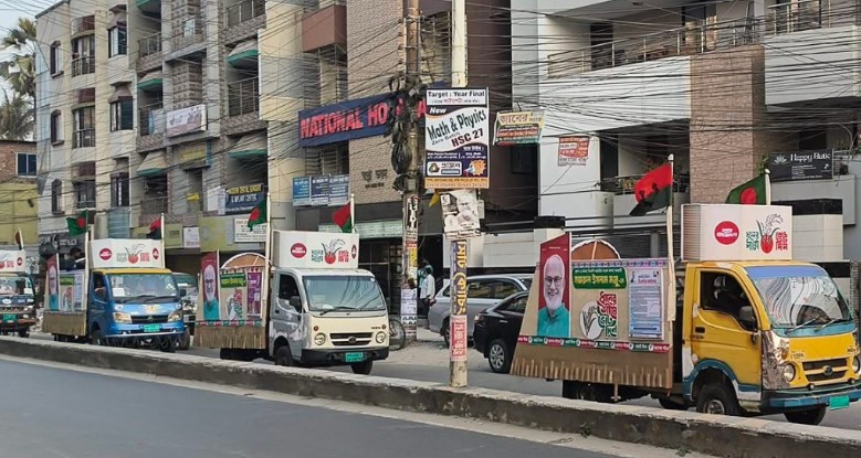 সড়কের পাশে সারিবদ্ধভাবে সাজানো পিকআপ ভ্যানগুলোতে প্রার্থীর ছবি, ধানের শীষ প্রতীক এবং নির্বাচনী বার্তা চোখে পড়ার মতো পরিবেশ সৃষ্টি করছে। প্রচারণার সময় শহরের বিভিন্ন গুরুত্বপূর্ণ এলাকা ও রাস্তায় সাধারণ মানুষের কৌতূহল এবং উৎসাহ লক্ষ্য করা যায়।