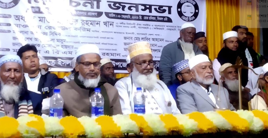 ফকিরহাট প্রতিনিধি : বাগেরহাটের ফকিরহাটে বাগেরহাট-১ আসন (ফকিরহাট-মোল্লাহাট-চিতলমারী) এর বাংলাদেশ জামায়াতে ইসলামীর মনোনিত সংসদ সদস্য প্রার্থী অধ্যক্ষ মাওলানা মশিউর রহমান খানের (দাঁড়িপাল্লা) প্রতীকের নির্বাচনী জনসভা অনুষ্ঠিত হয়েছে। ১১ দলীয় ঐক্য জোটের উদ্যোগে রবিবার (৮ ফেব্রুয়ারি) সন্ধ্যায় ফকিরহাট আদর্শ বিদ্যালয় সংলগ্ মাঠে অনুষ্ঠিত জনসভায় প্রধান অতিথির বক্তব্য রাখেন বাগেরহাট-১ আসন এর বাংলাদেশ জামায়াতে ইসলামীর সংসদ সদস্য প্রার্থী অধ্যক্ষ মাওলানা মশিউর রহমান খান। অনুষ্ঠানে সভাপতিত্ব করেন বাংলাদেশ জামায়াতে ইসলামীর ফকিরহাট উপজেলা শাখার আমির মাওলানা এবিএম তৈয়াবুর রহমান। বাংলাদেশ জামায়াতে ইসলামীর ফকিরহাট উপজেলা শাখার সেক্রেটারী শেখ আবুল আলা মাসুম ও সহকারি সেক্রেটারি শেখ সুমন হোসেনের সঞ্চালনায় প্রধান বক্তা ছিলেন বাগেরহাট জেলা আমির মাওলানা রেজাউল করিম। এসময় অন্যান্যদের মধ্যে বক্তব্য রাখেন বাগেরহাট বায়তুল মাল সেক্রেটারী মাওলানা আবু বকর সিদ্দিক, নির্বাচনী প্রধান এজেন্ট অধ্যাপক মোফাজ্জল হায়দার, এনসিপির বাগেরহাট জেলার সিনিয়র সদস্য মো: লাবিব আহমেদ, এনসিপির ফকিরহাট উপজেলা শাখার সভাপতি মিজানুর রহমান, বাংলাদেশ খেলাফত মজলিস এর ফকিরহাট শাখার সভাপতি মাওলানা মুরাদুল ইসলামসহ অন্যান্যরা।