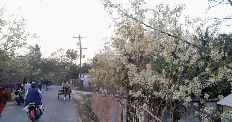 পাইকগাছা প্রতিনিধি : বাড়ি থেকে বের হয়ে মোটরসাইকেলে গন্তব্যের দিকে ছুটছিলাম। প্রতিদিনের মতো ব্যস্ততা, তাড়াহুড়ো, চোখ সামনে। কিন্তু হঠাৎই চোখে পড়লো এক ঝাঁঝালো দৃশ্য। রবিবার (৮ জানুয়ারি) গোধূলি বিকেলে ঘড়ির কাঁটা তখন ৫টা বেজে ৩১ মিনিট। পশ্চিমাকাশে সূর্য অস্ত যাওয়ার প্রস্তুতি, তার শেষ আলো গাছের ডালে পড়ে যেন ফুলের ঝলকানিতে পুরো এলাকা আলোকিত করে রেখেছে। এমন দৃশ্য চোখে পড়তেই ব্রেকে চাপ পড়ে গেল। বলছি পাইকগাছা পৌর সদরের কড়ুলী খেয়াঘাট সংলগ্ন প্রধান সড়কের কথা—সড়কের দু’পাশ জুড়ে দাঁড়িয়ে আছে বেশ কয়েকটি সজিনা গাছ, আর প্রতিটি গাছ যেন সাদা চাদরে ঢাকা। মুহূর্তের মধ্যে পকেট থেকে মোবাইল বের করে ছবি তুলতে শুরু করলাম। এমন দৃশ্য প্রতিবেদন না করে থাকা যায়?
