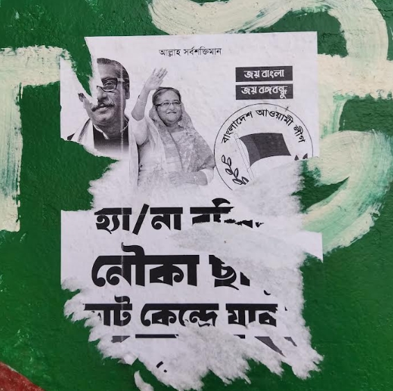 দীর্ঘদিনের গণতন্ত্র থেকে বঞ্চিত দেশের মানুষ যখন উৎসাহ আমেজের ভিতর দিয়ে গণতন্ত্র পুনরুদ্ধারে প্রথম মূলমন্ত্র ভোটাধিকার প্রয়োগ করার জন্য সকলে যখন প্রস্তুতি নিচ্ছে, ঠিক সেই সময়ে এই আওয়ামী লীগের কিছু পেতাত্তা বা দোসর, তারা গুপ্তভাবে এই পোস্টার লাগানো, লিফলেট ছড়ানো, ভোটকেন্দ্রে যাব না, নৌকা নাই, বিভিন্ন রকম শ্লোগান তারা গুপ্তভাবে এই প্রচারটি করছে।