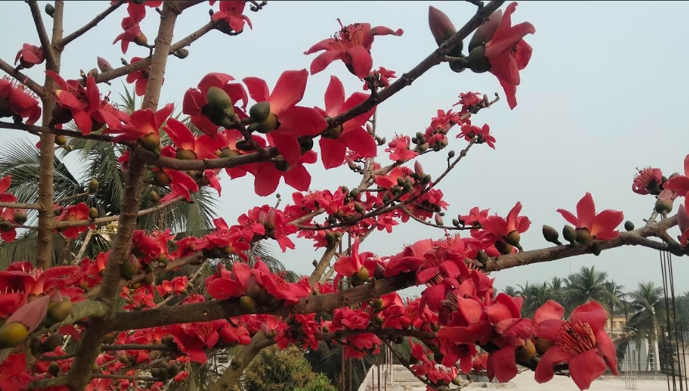বসন্তে শুরুতেই প্রকৃতি রংতুলিতে রাঙিয়েছে শিমুল ফুল