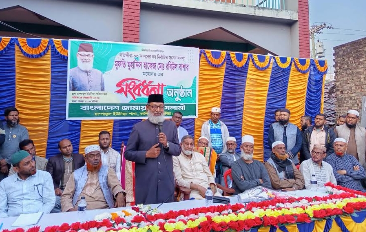 কালিগঞ্জ প্রতিনিধিঃ সাতক্ষীরার কালিগঞ্জের চাম্পাফুল ইউনিয়ন জামায়াতে ইসলামীর উদ্যোগে শনিবার (১৪ই ফেব্রুয়ারি) বিকাল ৫ টায় চাম্পাফুল ইউনিয়ন পরিষদ চত্বরে নবনির্বাচিত সংসদ সদস্য হাফেজ মুহাদ্দিস রবিউল বাশারের সংবর্ধনা অনুষ্ঠিত হয়। ইউনিয়ন আমীর মাফিজুর রহমানের সভাপতিত্বে এবং সেক্রেটারি ইব্রাহিম রহমান এর সঞ্চালনায় প্রধান সংবর্ধিত অতিথি হিসেবে উপস্থিত ছিলেন সাতক্ষীরা ৩ (কালিগঞ্জ-আশাশুনি) আসনের নবনির্বাচিত সংসদ সদস্য হাফেজ রবিউল বাশার। বিশেষ অতিথি হিসেবে উপস্থিত ছিলেন জামায়াতের কালিগঞ্জ উপজেলা আমীর সহকারী অধ্যাপক মাওলানা আব্দুল ওহাব সিদ্দিকী এবং উপজেলা সেক্রেটারি সহকারী অধ্যাপক আব্দুর রউফ । আরো উপস্থিত ছিলেন উপজেলা জামায়াতের সহকারী সেক্রেটারি মোঃ আবু ইসলাম, কর্মপরিষদ সদস্য মাওলানা নুরুল ইসলাম মোড়ল, ইউনিয়ন যুব ও ক্রীড়া বিভাগের সভাপতি আতিয়ার রহমান এবং ইউনিয়নের টিম সদস্যবৃন্দ।