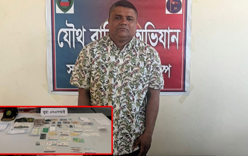 স্থানীয় ও যৌথ বাহিনী সূত্রে জানা গেছে, শনিবার বেলা ২টার দিকে শাহজাহান চৌধুরী সাতকানিয়া পৌরসভার ছমদরপাড়া এলাকায় নিজের বাড়িতে অবস্থান করছিলেন। এ সময় মোহাম্মদ ফখরুদ্দিন নামের এক যুবক সেখানে গিয়ে নিজেকে এনএসআই কর্মকর্তা পরিচয় দেন। একপর্যায়ে ওই যুবক শাহজাহান চৌধুরীর ব্যক্তিগত সহকারীর কাছে ২০ হাজার টাকা চাঁদা দাবি করেন। এ সময় বিষয়টি যৌথ বাহিনীকে অবহিত করা হয়। যৌথ বাহিনীর একটি দল ঘটনাস্থলে গিয়ে ফখরুদ্দিনকে গ্রেপ্তার করে। এ সময় ফখরুদ্দিনের দেহ তল্লাশি করে তাঁর মানিব্যাগ থেকে সেনাবাহিনীর ইউনিফর্ম পরা একাধিক ছবি ও কিছু ভিজিটিং কার্ড উদ্ধার করা হয়।