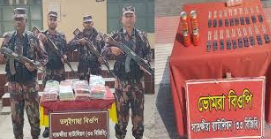 কাকডাঙ্গা বিওপির বিশেষ আভিযানিক দল সীমান্ত পিলার ১৩/৩-এস এর ৫ আরবি হতে আনুমানিক ২০০ গজ বাংলাদেশের অভ্যন্তরে কলারোয়া থানাধীন গেড়াখালি নামক স্থান হতে ৮৪,০০০/ টাকা মূল্যের শাড়ি আটক করে। তলুইগাছা বিওপির বিশেষ আভিযানিক দল সীমান্ত মেইন পিলার ১৩ হতে আনুমানিক ৩০০ গজ বাংলাদেশের অভ্যন্তরে সাতক্ষীরা সদর থানাধীন শালবাগান নামক স্থান হতে ৭০,০০০/- টাকা মূল্যের ঔষধ আটক করে। এছাড়াও সুলতানপুর বিওপির বিশেষ আভিযানিক দল সীমান্ত পিলার ১৬/৬ এস হতে আনুমানিক ৪০০ গজ বাংলাদেশের অভ্যন্তরে কলারোয়া থানাধীন বর্মিতলা নামক স্থান হতে ৮০,০০০ টাকা মূল্যের ভারতীয় ঔষধ ও চশমা আটক করে।