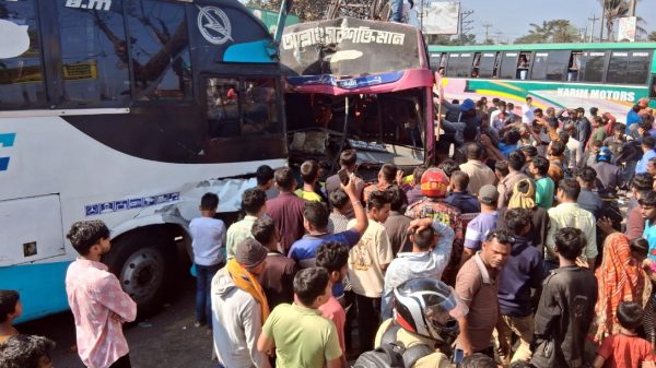 ফকিরহাট প্রতিনিধি : বাগেরহাটের ফকিরহাটে দুটি যাত্রীবাহী বাসের সাথে মূখোমূখি সংঘর্ষের ঘটনায় নারীসহ ১৫ জন আহত হয়েছেন। খুলনা-ঢাকা মহাড়কের ফকিরহাট বিশ্বরোড মোড় এলাকায় এ দুর্ঘটনা ঘটে। পুলিশ জানায়, রবিবার (১৫ ...বিস্তারিত পড়ুন