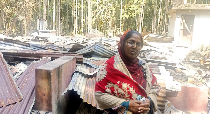 মোরেলগঞ্জে শিক্ষিকার বসতবাড়ি পুড়িয়ে দিয়েছে দুর্বৃত্তরা