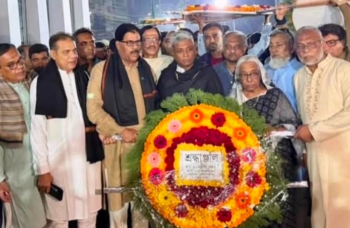 যশোর প্রতিনিধি : যথাযোগ্য মর্যাদা ও বিনম্র শ্রদ্ধায় যশোরে পালিত হচ্ছে অমর একুশে ফেব্রুয়ারি ও আন্তর্জাতিক মাতৃভাষা দিবস। শোক ও শ্রদ্ধার প্রতীক কালো ব্যাজ ধারণ করে এবং হাতে ফুলের স্তবক নিয়ে হাজারো মানুষ স্মরণ করছেন ভাষা আন্দোলনের বীর শহীদদের। রাত ১২টা ১ মিনিটে একুশের প্রথম প্রহরে যশোর সরকারি মাইকেল মধুসূদন (এমএম) কলেজ প্রাঙ্গণে অবস্থিত কেন্দ্রীয় শহীদ মিনারে পুষ্পস্তবক অর্পণের মাধ্যমে দিবসের কর্মসূচি শুরু হয়। প্রথমেই শহীদ বেদিতে পুষ্পস্তবক অর্পণ করে ভাষা শহীদদের প্রতি গভীর শ্রদ্ধা নিবেদন করেন বিদ্যুৎ, জ্বালানি ও খনিজ সম্পদ মন্ত্রণালয়ের প্রতিমন্ত্রী অনিন্দ্য ইসলাম অমিত।