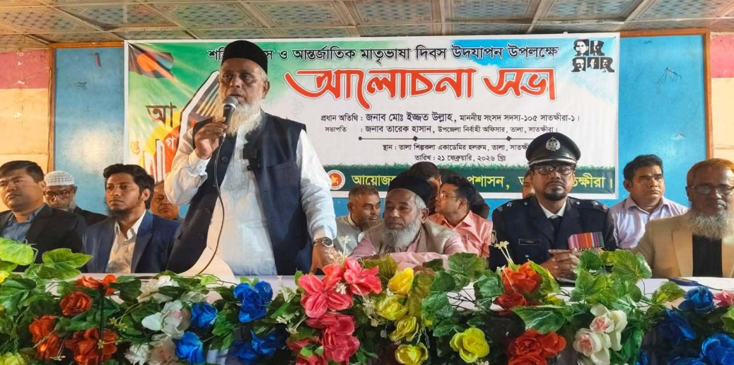 তালা প্রতিনিধি : তালায় ভাষা শহীদদের প্রতি অকৃত্রিম ভালবাসা ও শ্রদ্ধা নিবেদনের মধ্য দিয়ে অমর একুশে ফেব্রুয়ারী মহান শহীদ দিবস তথা আন্তর্জাতিক মাতৃভাষা দিবস পালিত হয়েছে। দিনটি উদযাপনে উপলক্ষ্যে উপজেলা প্রশাসনের উদ্যোগে দিনব্যাপী বিভিন্ন কর্মসূচি পালিত হয়েছে। একুশের প্রথম প্রহর রাত ১২টা ১ মিনিটে তালা শিল্পকলা একাডেমি চত্বরে নির্মিত কেন্দ্রীয় শহীদ মিনারে পুষ্পমাল্য অর্পন করা হয়। পরে শিল্পকলা একাডেমি মিলনায়তনে অনুষ্ঠিত আলোচনা সভায় সভাপতিত্ব করেন তালা উপজেলা নির্বাহী কর্মকর্তা তারেক হাসান। প্রধান অতিথি হিসেবে উপস্থিত ছিলেন সাতক্ষীরা-১ (তালা-কলারোয়া) আসনের নবনির্বাচিত সংসদ সদস্য অধ্যক্ষ মুহাম্মদ ইজ্জত উল্লাহ। ইউআরসি ইন্সট্রাক্টর মোঃ ইমান উদ্দীনের পরিচালনায় অনুষ্ঠানে আরও উপস্থিত ছিলেন উপজেলা সহকারী কমিশনার (ভূমি) মোঃ রাহাত খান, তালা থানার ওসি শহিদুল ইসলাম হাওলাদার, জেলা জামায়াতের নায়েবে আমীর ডাঃ মাহমুদুল হক, উপজেলা বিএনপির প্রাক্তন সভাপতি মৃনাল কান্তি রায়, সাধারণ সম্পাদক ও মহিলা কলেজের ভারপ্রাপ্ত অধ্যক্ষ সেখ শফিকুল ইসলাম, জামায়াতের সভাপতি মাওঃ মফিদুল্লাহ, সাধারণ সম্পাদক অধ্যাপক ইদ্রিস আলী, উপজেলা কৃষি অফিসার হাজিরা খাতুন, সিনিয়র মৎস্য অফিসার তারিক ইমাম, প্রাণিসম্পদ অফিসার ডাঃ মাছুম বিল্লাহ, মাধ্যমিক শিক্ষা অফিসার মোঃ আতিয়ার রহমান, প্রাথমিক শিক্ষা অফিসার গাজী সাইফুল ইসলাম, প্রকল্প বাস্তবায়ন কর্মকর্তা আশরাফ হোসেন, আইসিটি অফিসার রেজাউল করিম, মাধ্যমিক শিক্ষা অফিসের একাডেমিক সুপারভাইজার প্রভাস কুমার দাস, তালা প্রেসক্লাবের সভাপতি এমএ হাকিম, সাংবাদিক আকবর হোসেন, কামরুজ্জামান মিঠু, উপজেলা যুবদলের আহবায়ক মির্জা আতিয়ার রহমান, যুব জামায়াতের সভাপতি মোস্তাফিজুর রহমান রেন্টু প্রমুখ। এ সময় চিত্রাংকন, রচনা প্রতিযোগিতা, নান্দনিক হাতের লেখা ও কবিতা আবৃত্তিসহ বিভিন্ন প্রতিযোগিতার পুরষ্কার বিতরণ করা হয়।
