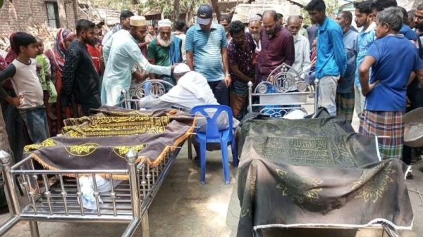 প্রতিবেশী আলমগীর কবীর বলেন, বাদ জোহর দুই ভাইয়ের একসাথে জানাজা নামাজ শেষে পারিবারিক কবরস্থানে দাফন করা হয়। দুই ভাইয়ের মৃত্যুতে এলাকায় শোকেরছায়া নেমে এসেছে।