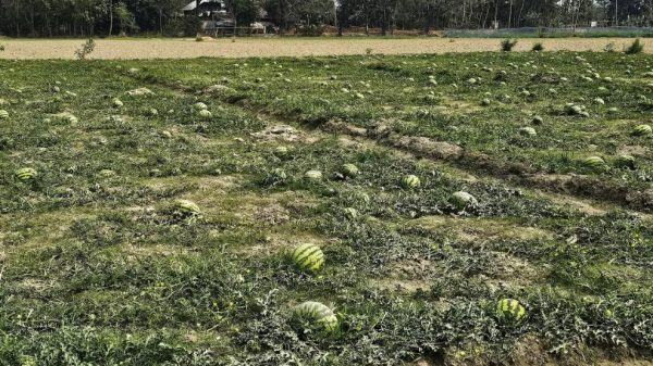 দশমিনা(পটুয়াখালী)প্রতিনিধি : পটুয়াখালীর উপকূলীয় উপজেলা দশমিনার তেঁতুলিয়া ও বুড়াগৌরাঙ্গ নদীর মাঝে জেগে উঠা চরাঞ্চলে আগাম তরমুজের বাম্পার ফলনে কৃষিতে নতুন করে সম্ভাবনার দ্বার উন্মোচন হয়েছে। উপজেলা কৃষি সম্প্রসারন অধিদপ্তরের উদ্যোগে ২০২৫-২০২৬ অর্থ বছরে বাংলাদেশের চর এলাকায় আধুনিক কৃষি প্রযুক্তি সম্প্রসারন প্রকল্পের(১ম সংশোধিত) আওতায় চরাঞ্চলসহ ফসলি জমিতে কৃষকরা তরমুজ চাষ করে ব্যাপক সফলতা অর্জন করেছে। উপজেলার চর এলাকায় কৃষি বিপ্লব ঘটাতে ছোট-বড় প্রায় অর্ধ শতাধিক চরাঞ্চলে তরমুজ কাষ করা হয়। চরাঞ্চলগুলোকে কৃষিকাজের আওতায় নেয়ার ফলে কৃষকরা নতুন করে স্বপ্ন দেখছে। উপজেলার চারিদিকে নদী বেষ্টিত চরগুলোতে জমি উর্বর থাকায় আগাম তরমুজের বাম্পার ফলন হয়েছে। তবে বিস্তীর্ন চরাঞ্চলে তরমুজের আবাদ সবচেয়ে বেশী হয়। বিশাল বিশাল চরে কৃষকরা সারি সারি করে বীজ বপন করার পর পানি ও জৈব সার প্রয়োগ করছে বিধায় প্রত্যেকটি চরে এই বছর তরমুজের বাম্পার ফলন হয়েছে। চলতি বছর কৃষকরা আগাম জাতের তরমুজ চাষ শুরু করে ছিল। চরাঞ্চলসহ ফসলি জমিতে মাঠ ভরা আগাম তরমুজের বাম্পার ফলন দেখে কৃষকদের মুখে হাসি ফুটেছে।
