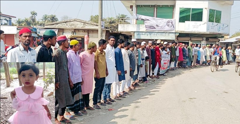মহেশপুর (ঝিনাইদহ) সংবাদদাতা : ঝিনাইদহের মহেশপুরে চার বছরের শিশু তাবাসসুম হত্যার আসামি তাহেরের ফাঁসির দাবিতে মানববন্ধন ও বিক্ষোভ হয়েছে। শুক্রবার জুমার নামাজের পর মহেশপুর উপজেলার ভৈরবা বাজারে তাবাসসুমের স্বজন ও স্থানীয় বাসিন্দারা এ কর্মসূচি পালন করেন। ানববন্ধনে বিভিন্ন শ্রেনি-পেশার মানুষ ব্যানার, ফেস্টুন ও প্লেকার্ড নিয়ে অংশ নেন। বক্তারা বলেন, নির্মম এ হত্যাকান্ডে জড়িত ব্যক্তির দ্রুত বিচার নিশ্চিত করে সর্বোচ্চ শাস্তি দিতে হবে। অন্যথায় তাঁরা আরও কঠোর কর্মসূচি দেওয়ার হুঁশিয়ারি দেন। পুলিশ জানায়, হত্যাকান্ডের মূল আসামি তাহেরকে গত রাতে কুষ্টিয়া থেকে আটক করা হয়েছে। তাকে জিজ্ঞাসাবাদ করা হচ্ছে। এর আগে বৃহস্পতিবার সকালে ঝিনাইদহের কালীগঞ্জ উপজেলার বাদুরগাছা গ্রামে অবস্থিত আব্দুল জব্বার মাধ্যমিক বিদ্যালয়ের সেপটিক ট্যাংক থেকে তাবাসসুমের বস্তাবন্দী লাশ উদ্ধার করা হয়। বুধবার বিকেল আড়াইটার পর থেকে সে নিখোঁজ ছিল। পরিবারের সদস্যরা সম্ভাব্য বিভিন্ন স্থানে খোঁজাখুঁজি করেও তার সন্ধান পাননি। স্থানীয় সূত্রে জানা গেছে, বিদ্যালয়ের পেছনের মাঠে একটি রক্তাক্ত বস্তা দেখতে পেয়ে এক কৃষক পুলিশে খবর দেন। পরে পুলিশ ঘটনাস্থলে গিয়ে বস্তা খুলে শিশুটির লাশ উদ্ধার করে। লাশটি ময়না তদন্তের জন্য ঝিনাইদহ সদর হাসপাতালের মর্গে পাঠানো হয়েছে। নিহত তাবাসসুম মহেশপুর উপজেলার ভৈরবা এলাকার নজরুল ইসলামের মেয়ে। তাঁর বাবা স্থানীয় একটি দর্জির দোকানের কর্মচারী। পরিবারটি বর্তমানে কালীগঞ্জ উপজেলার বারবাজার এলাকার বাদেডিহি গ্রামে ভাড়া বাসায় বসবাস করছিল।