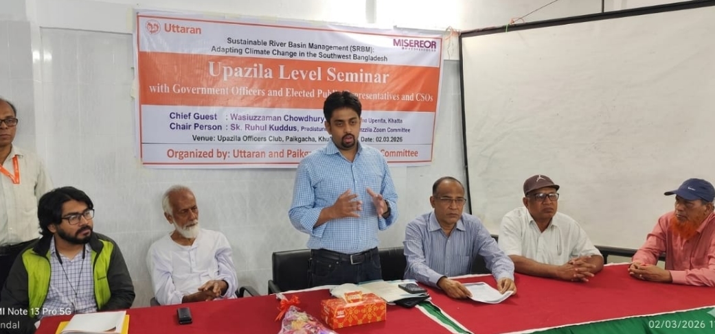 পাইকগাছা প্রতিনিধি : ঐতিহ্যবাহী শিবসা ও হাঁড়িয়া নদী খনন করে পাইকগাছা অববাহিকায় টিআরএম প্রকল্প বাস্তবায়ন, পৌরসভা সহ ১০টি ইউনিয়নের উপকূলীয় টেঁকসই বেড়িবাঁধ নির্মাণ ও উপজেলার জলাবদ্ধ এলাকার খাস খাল অবৈধ দখল মুক্ত করে খননের মাধ্যমে নিষ্কাশন ব্যবস্থা কার্যকর করার দাবিতে আলোচনা সভা ও স্মারকলিপি প্রদান করা হয়েছে। ২ মার্চ সোমবার সকালে উপজেলা অফিসার্স ক্লাবে এবিষয়ে উপজেলা পানি কমিটির সভাপতি অব. সহকারী অধ্যাপক সেখ রুহুল কুদ্দুস এর সভাপতিত্বে আলোচনা সভা অনুষ্ঠিত হয়। প্রধান অতিথি ছিলেন, উপজেলা নির্বাহী অফিসার ওয়াসিউজ্জামান চৌধুরী। এসময় উত্তরণের দিলীপ কুমার এর সঞ্চালনায় বক্তৃতা করেন, উপজেলা পানি কমিটির সহ সভাপতি মুক্তিযোদ্ধা রুহুল আমিন গাজী, সাধারণ সম্পাদক শেখ সাদেকুজ্জামান, অব. সহকারী অধ্যাপক সুধাংশু মন্ডল, মো. মনিরুজ্জামান, রেজাউল করিম, মনিরুজ্জামান মনি সহ কমিটির সদস্যবৃন্দ। সভা শেষে উপজেলা নির্বাহী অফিসার ওয়াসিউজ্জামান চৌধুরী'র নিকট স্মারক লিপি প্রদান করেন উপজেলা পানি কমিটির নেতৃবৃন্দ।
