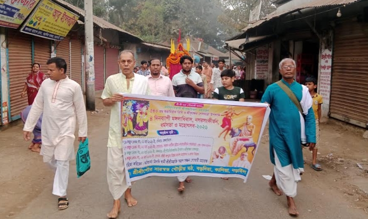 কালিয়ার বড়দিয়া গৌড়ীয় মঠে মঙ্গলাধিবাস, নগরসংকীর্তন, ধর্মসভা ও মহোৎসব