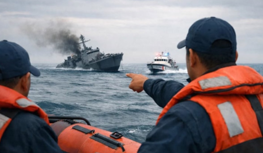 ১৮০ জন ক্রু-সদস্যের ফ্রিগেটটি ভোরের দিকে বিপৎসংকেত পাঠায়।