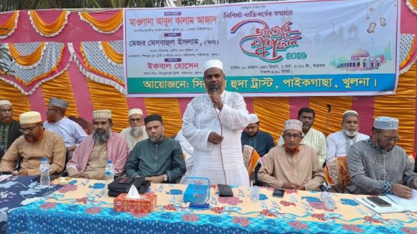 পাইকগাছা প্রতিনিধি : খুলনার পাইকগাছা উপজেলায় বিশিষ্ট ব্যক্তিবর্গদের সম্মানে আলোচনা সভা ও ইফতার মাহফিলের আয়োজন করেছে সিরাতুল হুদা ট্রাস্ট। শুক্রবার (৬ মার্চ) বিকেলে ট্রাস্টের উদ্যোগে অনুষ্ঠিত এ আয়োজনে বিভিন্ন শ্রেণি-পেশার গণ্যমান্য ব্যক্তিবর্গ, রাজনৈতিক নেতৃবৃন্দ, সমাজসেবক, সাংবাদিক এবং সুধীজনের উপস্থিতিতে এক সৌহার্দ্যপূর্ণ পরিবেশের সৃষ্টি হয়।অনুষ্ঠানের শুরুতেই পবিত্র কোরআন থেকে তেলাওয়াত করেন সিরাতুল হুদা হাফিজিয়া মাদ্রাসার হাফেজ মোঃ রফিকুল ইসলাম। এরপর আলোচনা সভা অনুষ্ঠিত হয়।অনুষ্ঠানে প্রধান অতিথি হিসেবে বক্তব্য রাখেন খুলনা-৬(পাইকগাছা-কয়রা) আসনের নবনির্বাচিত সংসদ সদস্য মাওলানা আবুল কালাম আজাদ। তিনি বলেন, পবিত্র রমজান মাস হচ্ছে আত্মশুদ্ধি, সংযম ও তাকওয়া অর্জনের মাস। এ মাস মানুষকে ধৈর্য,সহমর্মিতা ও মানবতার শিক্ষা দেয়। তিনি আরও বলেন, সমাজের বিত্তবান ও সচ্ছল মানুষের উচিত রমজানের শিক্ষাকে ধারণ করে অসহায় ও দরিদ্র মানুষের পাশে দাঁড়ানো। এতে সমাজে ন্যায়বিচার ও মানবিক মূল্যবোধ আরও সুদৃঢ় হবে।প্রধান অতিথি তার বক্তব্যে সিরাতুল হুদা ট্রাস্টের বিভিন্ন সামাজিক ও মানবিক কার্যক্রমের ভূয়সী প্রশংসা করেন। তিনি বলেন, এ ধরনের উদ্যোগ সমাজে সম্প্রীতি, সহমর্মিতা ও ভ্রাতৃত্ববোধ জোরদার করতে গুরুত্বপূর্ণ ভূমিকা রাখে। ভবিষ্যতেও ট্রাস্টের এ ধরনের কর্মকাণ্ড অব্যাহত থাকবে বলে তিনি আশা প্রকাশ করেন।অনুষ্ঠানে সভাপতিত্ব করেন সাবেক পরিচালক, দুর্নীতি দমন কমিশন এবং সিরাতুল হুদা ট্রাস্ট ও শামসুর রহমান ফাউন্ডেশনের চেয়ারম্যান মেজর মেসবাহুল ইসলাম (অবঃ)। সভাপতির বক্তব্যে তিনি বলেন, একটি সুন্দর ও মানবিক সমাজ গঠনের জন্য সবাইকে সম্মিলিতভাবে কাজ করতে হবে। ধর্মীয় মূল্যবোধ, নৈতিক শিক্ষা ও মানবিক চেতনা সমাজকে আলোকিত করতে পারে। তিনি সমাজের কল্যাণে সকলকে ঐক্যবদ্ধভাবে এগিয়ে আসার আহ্বান জানান।
