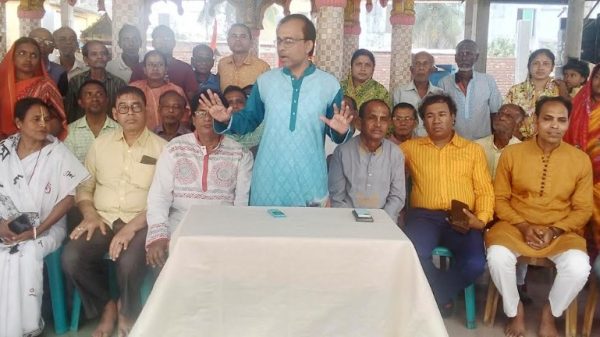 দাকোপ প্রতিনিধি : খুলনা জেলা পূজা উদ্যাপন পরিষদের নেতৃবৃন্দের সাথে নব গঠিত দাকোপ উপজেলা ও চালনা পৌরসভা পূজা উদ্যাপন পরিষদের নেতৃবৃন্দের মত বিনিময় সভা অনুষ্ঠিত হয়েছে। শনিবার বেলা ১২টায় চালনা পৌরসভার বৌমার গাছতলায় অবস্থিত উপজেলা কেন্দ্রীয় শ্রী শ্রী রাধা গোবিন্দ মন্দির প্রাঙ্গনে নব গঠিত উপজেলা পূজা উদ্যাপন পরিষদের আহবায়ক গোবিন্দ বিশ্বাসের সভাপতিত্বে ও চালনা পৌরসভা পূজা উদ্যাপন পরিষদের সদস্য সচিব লিপিকা বৈরাগীর পরিচালনায় অনুষ্ঠিত সভায় প্রধান অতিথির বক্তৃতা করেন খুলনা জেলা পূজা উদ্যাপন পরিষদের সাধারণ সম্পাদক বিমান কুমার সাহা। বিশেষ অতিথির বক্তৃতা করেন জেলা কমিটির উপদেষ্টা সনত কুমার বিশ্বাস, দিলীপ কুমার বর্মন, সহ-সভাপতি অজিত কুমার বিশ্বাস, সাংস্কৃতিক সম্পাদক আশীষ কুমার সিনহা, প্রচার সম্পাদক পলাশ কুমার মন্ডল। অন্যান্যের মধ্যে বক্তৃতা করেন পৌর কমিটির আহবায়ক চিন্ময় বিশ্বাস, উপজেলা কমিটির সদস্য সচিব প্রবীর রায় বাপ্পী, সদস্য শিশির বিশ্বাস, পরিমল রায়, দেবাশীষ ঢালী, দিপ্তী সরদার, কনিকা বৈরাগী, ছন্দা মন্ডল, সর্মিষ্ঠা সাহা, কালিপদ রায়, বিভূতি বিশ্বাস, জয়ন্তী বিশ্বাস, শিবানী সরদার, বিধান চন্দ্র ঘোষ, শিবপদ বৈরাগী, শিশির গোলদার, জীবন মন্ডল, রেবতী বিশ্বাস, ননী গোপাল বিশ্বাস, রাজেন্দ্র নাথ মন্ডল, সুকুমার বিশ্বাস, প্রশান্ত শীল, গোবিন্দ সাহা প্রমুখ। সভা শেষে নেতৃবৃন্দ বাজুয়া আর্য্য হরি সভা মন্দিরে অনুষ্ঠিত মহা নামযজ্ঞানুষ্ঠান পরিদর্শন করেন। এসময়ে তাদের সাথে উপস্থিত ছিলেন বাজুয়া ইউপি চেয়ারম্যান মানষ রায়, দাকোপ প্রেস ক্লাবের সভাপতি শামীম হোসেন, সাংবাদিক দীপক কুমার রায়, দীপক কুমার সরদারসহ আরো অনেকে।