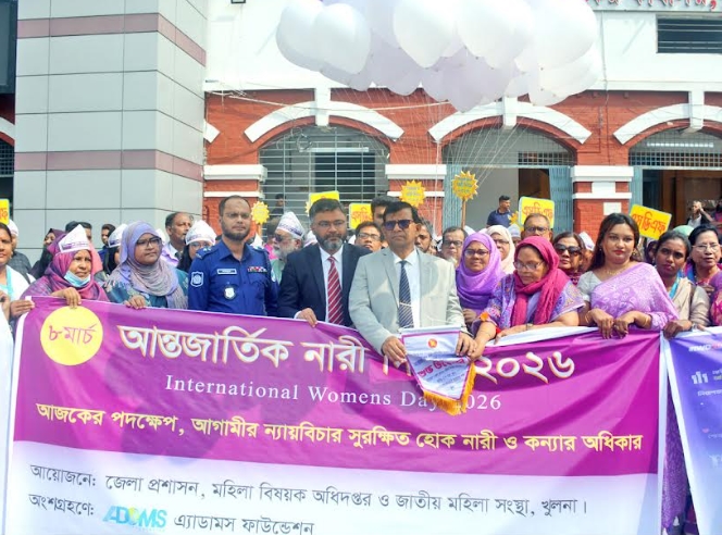 তথ্যবিবরণী : উদ্বোধন অনুষ্ঠান, বর্ণাঢ্য শোভাযাত্রা, আলোচনা সভাসহ বিভিন্ন কর্মসূচির মধ্য দিয়ে আজ রবিবার খুলনায় আন্তর্জাতিক নারী দিবস পালন করা হয়। বেসরকারি উন্নয়ন সহযোগী সংস্থার সহযোগিতায় খুলনা জেলা প্রশাসন, মহিলা বিষয়ক অধিদপ্তর ও জাতীয় মহিলা সংস্থা যৌথভাবে এ অনুষ্ঠানের আয়োজন করে। ‘আজকের পদক্ষেপ, আগামীর ন্যায়বিচার সুরক্ষিত হোক নারী ও কন্যার অধিকার’ এই প্রতিপাদ্য নিয়ে দিবসটি উপলক্ষ্যে সকালে খুলনা জেলা প্রশাসকের সম্মেলনকক্ষে আলোচনা সভা অনুষ্ঠিত হয়। এতে প্রধান অতিথি ছিলেন খুলনার বিভাগীয় কমিশনার মোঃ মোখতার আহমেদ। অনুষ্ঠানে প্রধান অতিথি বলেন, নারীদের অবহেলার কোন সুযোগ নেই। প্রতিবছর সারা বিশে^র ন্যায় ‘আন্তর্জাতিক নারী দিবস’ আমরা যথাযথ সম্মানের সাথে পালন করে থাকি। অসমতা পুরুষের সাথে নয় সেটা হয়ে থাকে নারীদের সাথে। নারীদেরকে একজন মা, বোন বা স্ত্রী না ভেবে তাকে প্রথমত একজন মানুষ ভাবা আমাদের প্রত্যেকের উচিত। এমনকি তাদের শ্রমের সঠিক মূল্যায়নের ক্ষেত্রে নিশ্চয়তা প্রদান করা আমাদের সকলের দায়িত্ব। নারীদের প্রতি সমবেদনা নয়, তাদের সকল অধিকারের নিশ্চয়তা প্রদান করা আমাদের কর্তব্য। প্রধান অতিথি আরও বলেন প্রতিটি কর্মক্ষেত্রে নারীদের জন্য যদি আমরা একটি কমফোর্ট রুমের ব্যবস্থা রাখতে পারি তাহলে নারী-কর্মীরা তাদের কর্মক্ষেত্রে একদিকে যেমন তাদের ব্যক্তিগত কাজ করতে স্বাচ্ছন্দ্য ও নিরাপদবোধ করবে পাশাপাশি দাপ্তরিক কাজও তারা সুন্দরভাবে করতে পারবেন। খুলনার জেলা প্রশাসক আ. স. ম জামশেদ খোন্দকারের সভাপতিত্বে অনুষ্ঠানে অতিরিক্ত জেলা প্রশাসক (শিক্ষা ও আইসিটি) কানিজ ফাতেমা লিজা ও বেসরকারি উন্নয়ন সংস্থা মাসাসের নির্বাহী পরিচালক অ্যাডভাকেট শামীমা সুলতানা শিলু। স্বাগত বক্তৃতা করেন মহিলা বিষয়ক দপ্তরের উপপরিচালক (অতিরিক্ত দায়িত্ব) সুরাইয়া সিদ্দীকা। অনুষ্ঠানে বিভিন্ন সরকারি দপ্তরের কর্মকর্তা ও নারী সংগঠনের প্রতিনিধিরা উপস্থিত ছিলেন। এর আগে প্রধান অতিথি খুলনা কালেক্টরেট প্রাঙ্গণে আন্তর্জাতিক নারী দিবসের অনুষ্ঠান উদ্বোধন করেন। সকালে বিভাগীয় কমিশনার মোঃ মোখতার আহমেদের নেতৃত্বে নগরীর শহিদ হাদিস পার্ক থেকে বর্ণাঢ্য শোভাযাত্রা শুরু হয়ে বিভিন্ন সড়ক প্রদক্ষিণ করে কালেক্টরেট প্রাঙ্গণে এসে শেষ হয়। শোভাযাত্রায় নারী সংগঠনসহ বিভিন্ন শ্রেণি-পেশার মানুষ অংশ নেন।
