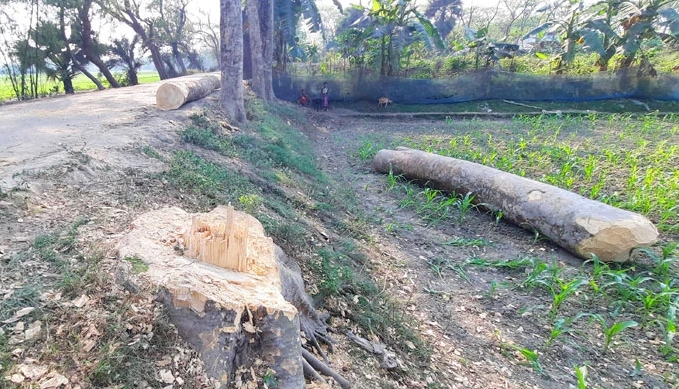 স্থানীয় সূত্রে জানা গেছে, খেশরা গ্রামের মনোরঞ্জন দাশের বাড়ি থেকে শিক্ষক স্বদেশ মল্লিকের বাড়ি পর্যন্ত কাঁচা রাস্তার দুই পাশে থাকা ২২টি গাছ কাটেন সাবেক মেম্বার তাপস দাশ ও তাঁর সহযোগীরা। বিষয়টি জানাজানি হলে গ্রামবাসী উপজেলা প্রশাসনকে খবর দেন। পরে ইউনিয়ন ভূমি অফিসের কর্মকর্তারা এসে গাছগুলো জব্দ করেন। তবে অভিযোগ রয়েছে, কর্মকর্তারা চলে যাওয়ার পর কৌশলে বড় তিনটি গাছ বিক্রি করে দেওয়া হয়, যার আনুমানিক বাজারমূল্য তিন লাখ টাকা।