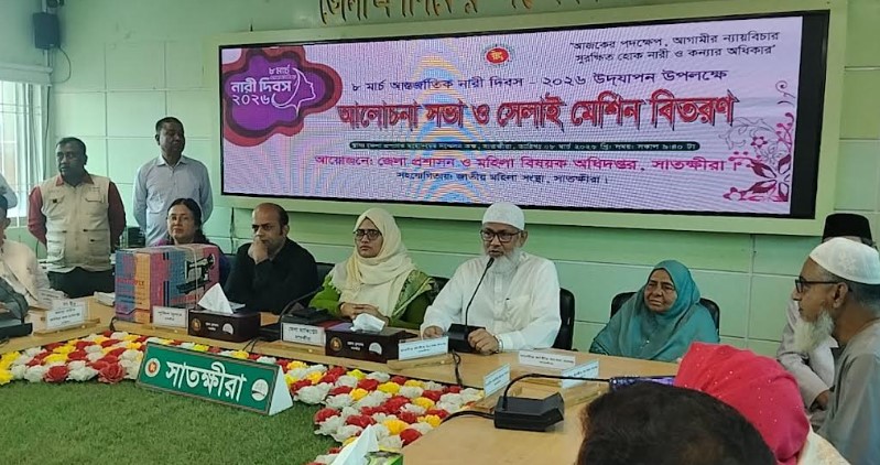 সাতক্ষীরা প্রতিনিধি : "আজকের পদক্ষেপ, আগামীর ন্যায়বিচার—সুরক্ষিত হোক নারী ও কন্যার অধিকার” প্রতিপাদ্যকে সামনে রেখে আন্তর্জাতিক নারী দিবস–২০২৬ উদযাপন উপলক্ষে সাতক্ষীরায় আলোচনা সভা ও সেলাই মেশিন বিতরণ অনুষ্ঠিত হয়েছে।
