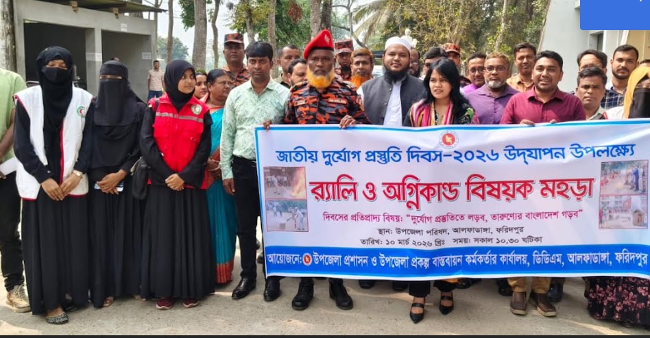আলফাডাঙ্গায় দুর্যোগ প্রস্তুতি দিবস উপলক্ষে র্যালি ও মহড়া অনুষ্ঠিত