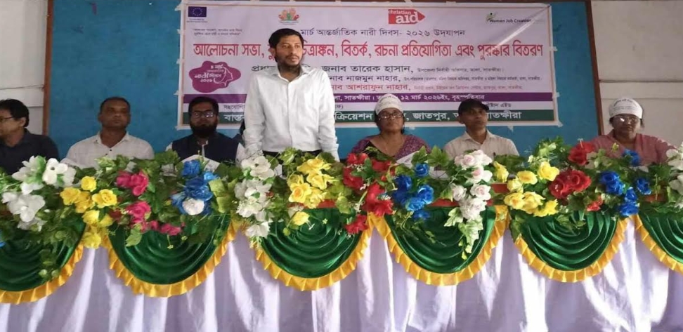 তালা প্রতিনিধি : “আজকের পদক্ষেপ,আগামীর ন্যায়বিচার: সুরক্ষিত হোক নারী ও কন্যার অধিকার” এই প্রতিপাদ্য সামনে রেখে তালায় আন্তর্জাতিক নারী দিবস উপলক্ষ্যে র্যালি, আলোচনা সভা, কুইজ, চিত্রাংকন বিতর্ক, রচনা প্রতিযোগিতা ও পুরষ্কার বিতরণ করা হয়। উইমেন জব ক্রিয়েশন সেন্টারের আয়োজনে, মানুষের জন্য ফাউন্ডেশনের সহযোগিতায় এবং খ্রীষ্টান এইডের অর্থায়নে অনুষ্ঠানে প্রধান অতিথি হিসেবে উপস্থিত ছিলেন তালা উপজেলা নির্বাহী কর্মকর্তা তারেক হাসান। তালা শিল্পকলা একাডেমিতে অনুষ্ঠিত সভায় সভাপতিত্ব করেন উইমেন জব ক্রিয়েশন পরিচালক আশরাফুন নাহার আশা। উত্তরণ কর্মকর্তা হাসিনা পারভীনের সঞ্চালনায় অনুষ্ঠানে বিশেষ অতিথি হিসেবে উপস্থিত ছিলেন জেলা মহিলা বিষয়ক অধিদপ্তরের উপ-পরিচালক ও তালা উপজেলা মহিলা বিষয়ক কর্মকর্তা নাজমুন নাহার। আরও উপস্থিত ছিলেন তালা উপজেলা কৃষি সম্প্রসারণ কর্মকর্তা মোঃ শাওন, ভূমিজ ফাউন্ডেশনের নির্বাহী পরিচালক অচিন্ত্য সাহা, শহীদ কামেল মডেল হাইস্কুলের প্রধান শিক্ষক গাজী জাহিদুর রহমান, নারী উন্নয়ন সংস্থার নির্বাহী পরিচালক গুলশানারা বেগম ও উইমেন জব ক্রিয়েশন সেন্টারের প্রকল্প সমন্বয়কারী কাজী বাবর আলী প্রমুখ। অনুষ্ঠান শেষে বিভিন্ন প্রতিযোগিতায় বিজয়ীদের মাঝে পুরস্কার বিতরণ করা হয়।