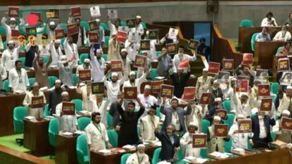 ডেস্ক রিপোর্ট : ত্রয়োদশ জাতীয় সংসদে রাষ্ট্রপতি মো. শাহাবুদ্দিনের ভাষণের জন্য নাম ঘোষণার সাথে সাথেই হট্টগোল শুরু হয়। এসময় ওয়াকআউট করেন প্রধান বিরোধীদল বাংলাদেশ জামায়াতে ইসলামীসহ বিরোধী জোটের সংসদ সদস্যরা।