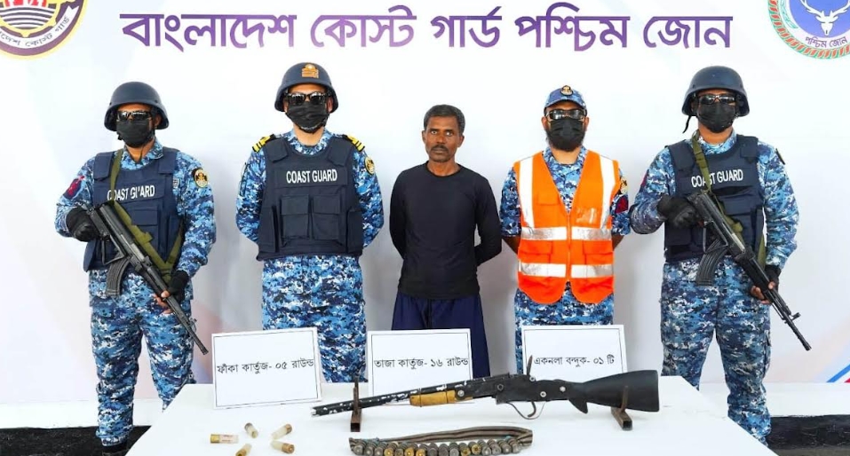 দাকোপ (খুলনা) প্রতিনিধি : সুন্দরবনে কোস্ট গার্ডের অভিযানে অস্ত্র ও গোলাবারুদসহ কুখ্যাত ডাকাত করিম শরীফ বাহিনীর এক সক্রিয় সদস্য আটক হয়েছে। বৃহস্পতিবার দুপুর দেড়টায় কোস্ট গার্ড মিডিয়া কর্মকর্তা লেফটেন্যান্ট কমান্ডার সাব্বির আলম সুজন এ তথ্যের সত্যতা নিশ্চিত করেন। তিনি জানান, গোপন সংবাদের ভিত্তিতে সুন্দরবনের কুখ্যাত ডাকাত করিম শরীফ বাহিনীর সদস্যরা সুন্দরবনের শেলা নদী সংলগ্ন মূর্তির খাল এলাকায় অবস্থান করছে। এমন প্রাপ্ত তথ্যের ভিত্তিতে গতকাল বৃহস্পতিবার সকাল ৬টায় কোস্ট গার্ড বেইস মোংলা কর্তৃক উক্ত এলাকায় একটি বিশেষ অভিযান পরিচালনা করে। অভিযান চলাকালীন উক্ত এলাকা হতে সুন্দরবনের কুখ্যাত ডাকাত করিম শরীফ বাহিনীর এক সক্রিয় সদস্য ওসমান গণি (৩৮) কে আটক করা হয়। পরবর্তীতে ওসমান গণির দেওয়া তথ্যের ভিত্তিতে উক্ত এলাকায় তল্লাশি চালিয়ে ১টি একনলা বন্দুক, ১৬ রাউন্ড তাজা কার্তুজ এবং ৫ রাউন্ড ফাঁকা কার্তুজ জব্দ করা হয়। ওসমান গণি সাতক্ষীরা জেলার আশাশুনি থানার বাসিন্দা। সে দীর্ঘদিন যাবৎ করিম শরীফ বাহিনীর সঙ্গে ডাকাতি এবং ডাকাত দলকে অস্ত্র ও গোলাবারুদ সরবরাহের মাধ্যমে সহযোগিতা করে আসছে। জব্দকৃত আলামত ও আটককৃত ডাকাতের পরবর্তী আইনানুগ ব্যবস্থা গ্রহণের কার্যক্রম প্রক্রিয়াধীন রয়েছে।