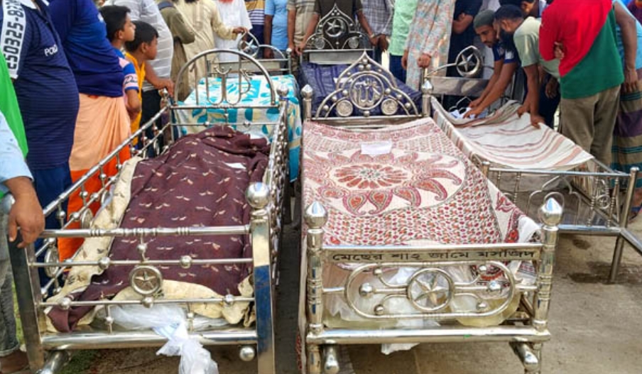 আজ সকালে মোংলা উপজেলা পরিষদ সংলগ্ন শেহলাবুনিয়ায় কনের বাড়িতে গিয়ে দেখা যায় শত শত মানুষের ভিড়। হৃদয়বিদারক এই ঘটনার খবর শুনে আত্মীয়স্বজন প্রতিবেশী ছাড়াও উপজেলার বিভিন্ন প্রান্ত থেকে মানুষ ছুটে আসছে। শোকে স্তব্ধ সবাই। আব্দুর রাজ্জাকের বাড়ির ভেতরে রাখা হয়েছে পরিবারের নিহত চার নারীর মরদেহ। পাশে উপজেলা পরিষদ চত্বরে বাকি পাঁচজনের মরদেহ।