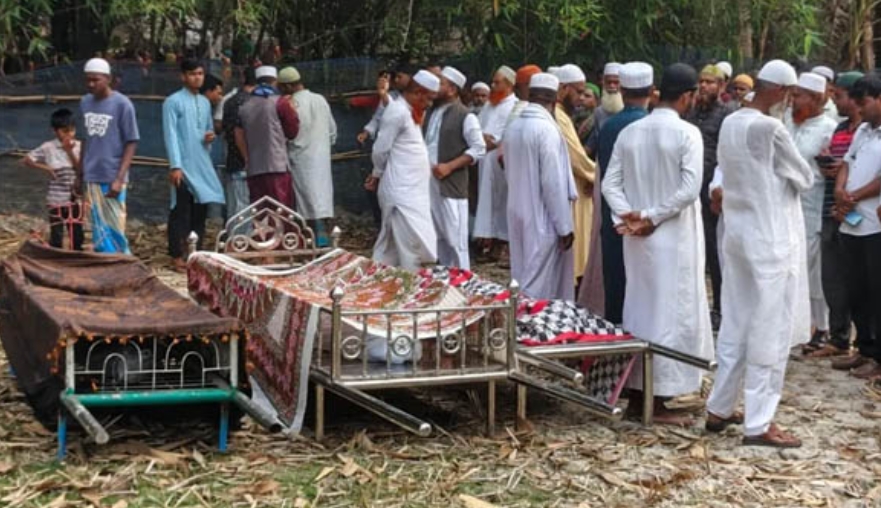 স্থানীয়রা জানায়, সালামের মা রাশিদা বেগম, মেয়ে নববধূ মিতু ও ছোট মেয়ে লামিয়ার মরদেহ গ্রামের বাড়ি নাকশায় আনার পর আজ সকালে তাদের জানাজার নামাজ শেষে পারিবারিক কবরস্থানে দাফন করা হয়। গ্রামে শোকের ছায়া নেমে এসেছে। কনের নানির মরদেহ তাদের গ্রামে দাফনের জন্য পাঠানো হয়েছে। এ রকম মর্মান্তিক দুর্ঘটনা এই প্রথম। যেখানে উৎসবের আনন্দ থাকার কথা সেখানে শোকে স্তব্ধ মানুষ। আব্দুস সালাম ভাই মাঝে মাঝে মূর্ছা যাচ্ছেন। মানুষ কান্নায় ভেঙে পড়েছেন। তাদের জন্য মানুষ দোয়া করছেন। দুই পরিবারের যারা মারা গেছেন তাদেরকে জান্নাতের সর্বোচ্চ মোকাম দান করুক-আমিন।