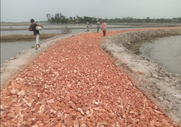 কয়রায় সড়ক নির্মাণে নিম্নমানের খোয়া ব্যবহারের অভিযোগ