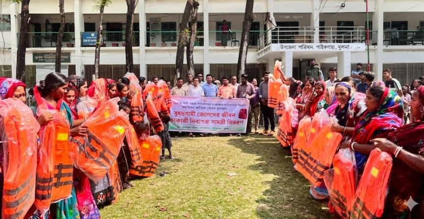 পাইকগাছা প্রতিনিধি : "মাছ ধরা হোক নিরাপদ, হাসি থাকুক প্রতিটি জেলের ঘরে।" জেলেরা জীবনের ঝুঁকি নিয়ে আমাদের রূপালি ইলিশ ও মাছের যোগান দেন। তাদের এই অক্লান্ত পরিশ্রমকে আরও নিরাপত্তা নিশ্চিত করতে ১৬ মার্চ সোমবার সকালে এডিপি'র (রাজস্ব স্থানান্তর) অর্থায়নে পাইকগাছা উপজেলা পরিষদ চত্বরে ১৩৩ জন সাহসী জেলের মাঝে বিতরণ করা হলো জীবন রক্ষাকারী সরঞ্জাম। উপজেলা নির্বাহী অফিসার ওয়াসিউজ্জামান চৌধুরী প্রধান অতিথি হিসেবে উপস্থিত থেকে জেলের মাঝে লাইফ জ্যাকেটসহ বিভিন্ন নিরাপত্তা সরঞ্জাম বিতরণ করেন। বিতরণকালে ইউএনও বলেন, "জেলেরা আমাদের অর্থনীতির অন্যতম চালিকাশক্তি। গভীর সমুদ্রে বা উত্তাল নদীতে মাছ ধরতে গিয়ে তারা প্রায়ই প্রাকৃতিক দুর্যোগের মুখে পড়েন। তাদের জীবন ও সম্পদের নিরাপত্তা নিশ্চিত করতেই উপজেলা পরিষদের এই বিশেষ উদ্যোগ। সঠিক সরঞ্জাম ব্যবহারে অনাকাঙ্ক্ষিত দুর্ঘটনা ও প্রাণহানি অনেকাংশে কমিয়ে আনা সম্ভব।" অনুষ্ঠানে উপজেলা সহকারী কমিশনার (ভূমি) মো. ফজলে রাব্বী, সিনিয়র উপজেলা মৎস্য কর্মকর্তা সৈকত মল্লিক, উপজেলা প্রকৌশলী মো. শাফিন শোয়েব, উপজেলা সমাজসেবা অফিসার অনাথ কুমার বিশ্বাস সহ স্থানীয় জনপ্রতিনিধি এবং উপকারভোগী জেলেরা উপস্থিত ছিলেন। বিতরণকৃত সামগ্রী হাতে পেয়ে জেলেরা আনন্দ প্রকাশ করেন। তারা জানান, এসব সরঞ্জাম তাদের কর্মক্ষেত্রে আত্মবিশ্বাস বাড়াবে এবং দুর্যোগকালীন সময়ে জীবন বাঁচাতে সহায়ক হবে।