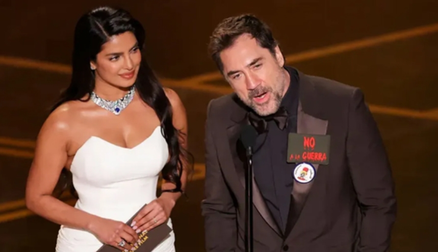 সেরা আন্তর্জাতিক পূর্ণদৈর্ঘ্য চলচ্চিত্র বিভাগের পুরস্কার প্রদানের জন্য মঞ্চে আসেন হাভিয়ের বারদেম ও প্রিয়াঙ্কা চোপড়া। এ সময় বারদেমের পোশাকে ‘যুদ্ধ নয়’ (No to War) লেখা একটি পিন লাগানো ছিল। পুরস্কার ঘোষণার আগে তিনি বলেন, ‘সে নো টু ওয়ার এন্ড ফ্রি প্যালেস্টাইন’ অর্থাৎ যুদ্ধকে না বলুন এবং ফিলিস্তিনকে মুক্ত করুন।