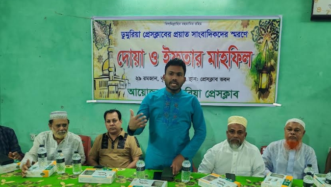 ডুমুরিয়া প্রেসক্লাবের সাধারণ সম্পাদক শেখ মাহতাব হোসেন এর সঞ্চালনায় ডুমুরিয়া প্রেসক্লাবের সভাপতি এসএম জাহাঙ্গীর আলমের সভাপতিত্বে অনুষ্ঠিত অতিথি হিসেবে বক্তব্য দেন ডুমুরিয়া উপজেলা বিএনপির সাবেক সভাপতি ও সদর ইউনিয়নের চেয়ারম্যান মোল্লা মোশাররফ হোসেন মফিজ, প্রবর্তন পত্রিকার সম্পাদক ও সাবেক গুটুদিয়া ইউনিয়নের চেয়ারম্যান মোস্তফা সরোয়ার, উপজেলা উপজেলা বিএনপির সাবেক সাংগঠনিক সম্পাদক শেখ মতিয়ার রহমান,আওয়ামী লীগের সাধারণ সম্পাদক শাহনেওয়াজ হোসেন জোয়ার্দার, সহ-সভাপতি আবু সাঈদ আহমদ, খুলনা কৃষক দলের সভাপতি মোল্লা কবিরুল ইসলাম, খুলনা জেলা বিএনপির সদস্য শেখ হাফিজুর রহমান, সাবেক যুগ্ম আহ্বায়ক ফরহাদ হোসেন, মশিউর রহমান,খুলনা জেলা ঠিকাদার কল্যাণ সমিতির সাধারণ সম্পাদক শেখ বদরুজ্জামান বাবলু, বিশিষ্ট ব্যবসায়ী শেখ জামশেদ ইট ভাটা মালিক সমিতির সভাপতি শাহজাহান জমাদার,আহমেদ,সাংবাদিক এম এ এরশাদ, আরিফুজ্জামান নয়ন,দোয়া পাঠ করেন মাওলানা বেলায়েত হোসেন, এছাড়া ডুমুরিয়া প্রেসক্লাবের সকল সাংবাদিক উপস্থিত ছিলেন।