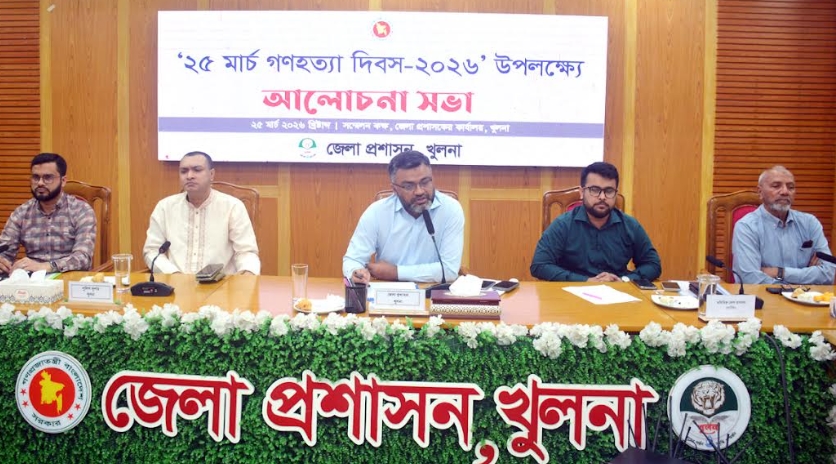 তথ্যবিবরণী : খুলনায় ২৫ মার্চ গণহত্যা দিবস উপলক্ষ্যে আলোচনা সভা আজ বুধবার সকালে জেলা প্রশাসকের সম্মেলনকক্ষে অনুষ্ঠিত হয়। এতে সভাপতিত্ব করেন জেলা প্রশাসক আ. স. ম. জামশেদ খোন্দকার।