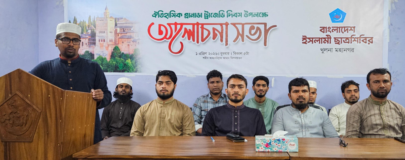 ১ এপ্রিল (বুধবার) বিকাল ৫টায় নগরীর শহীদ আমানউল্লাহ আমান মিলনায়তনে ঐতিহাসিক গ্রানাডা ট্রাজেডি দিবস উপলক্ষে মহানগর ছাত্রশিবির আয়োজিত আলোচনা সভায় প্রধান অতিথির বক্তব্যে এ কথা বলেন তিনি।