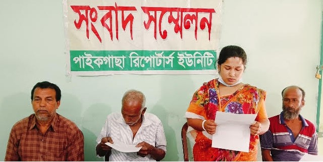 পাইকগাছা প্রতিনিধি : খুলনার পাইকগাছায় হিন্দু সম্প্রদায়ের দুটি চিংড়ী ঘের জবর দখল করে নেয়ায় সংবাদ সম্মেলন অনুষ্ঠিত হয়েছে। রোববার সকালে পাইকগাছা রিপোর্টার্স ইউনিটিতে সংবাদ সম্মেলনে লিখিত বক্তব্য পড়ে শোনান ক্ষতিগ্রস্ত কালিপদ বিশ্বাস ও অরুণ কুমার মন্ডলের পক্ষে গৃহবধূ শম্পা সানা।
