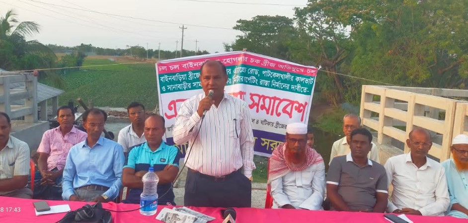 বুধবার বিকেলে বাইনবাড়িয়া ব্রিজের উপর এ সমাবেশ অনুষ্ঠিত হয়। এতে স্থানীয় বাসিন্দারা অংশ নিয়ে দীর্ঘদিন ধরে অবহেলিত এ সড়কগুলোর দ্রুত উন্নয়নের দাবি জানান।