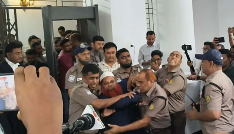 দুপুরে আন্তর্জাতিক অপরাধ ট্রাইব্যুনাল-২ এর চেয়ারম্যান বিচারপতি নজরুল ইসলাম চৌধুরীর নেতৃত্বাধীন তিন সদস্যের বিচারিক প্যানেল রায় ঘোষণা পরে ট্রাইব্যুনাল থেকে বের হওয়ার সময় তারা দায়িত্বরত পুলিশের সাথে ধাক্কাধাক্কি করেন।